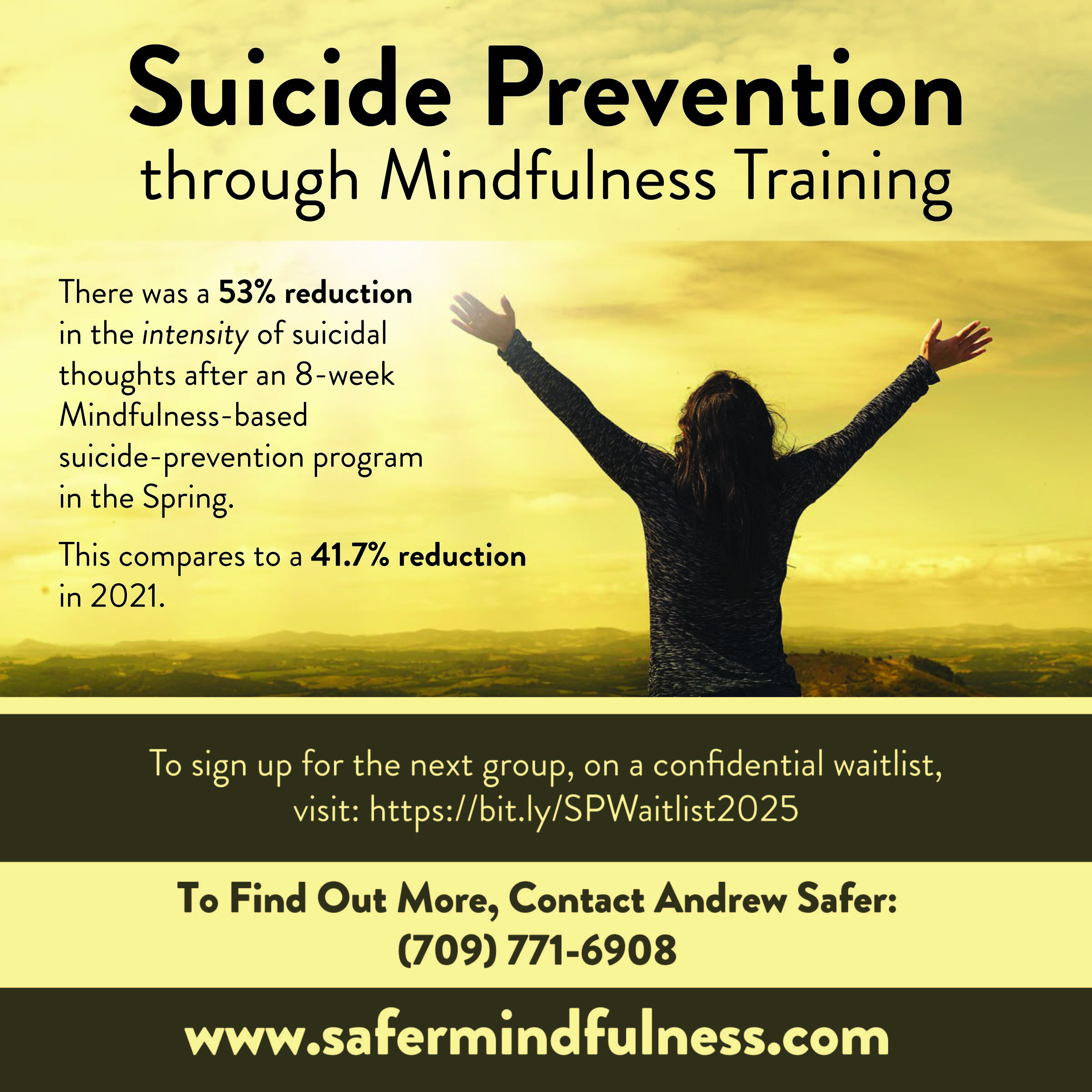 Paddy Daly interviewed Andrew Safer on VOCM Open Line on Wednesday about the upcoming “Suicide Prevention Through Mindfulness Training” program starting Tuesday, April 29th. To listen, click: Open Line with Paddy Daly | VOCM Select Wednesday April 23, and go to 1 hr. 56 min. (1:56).