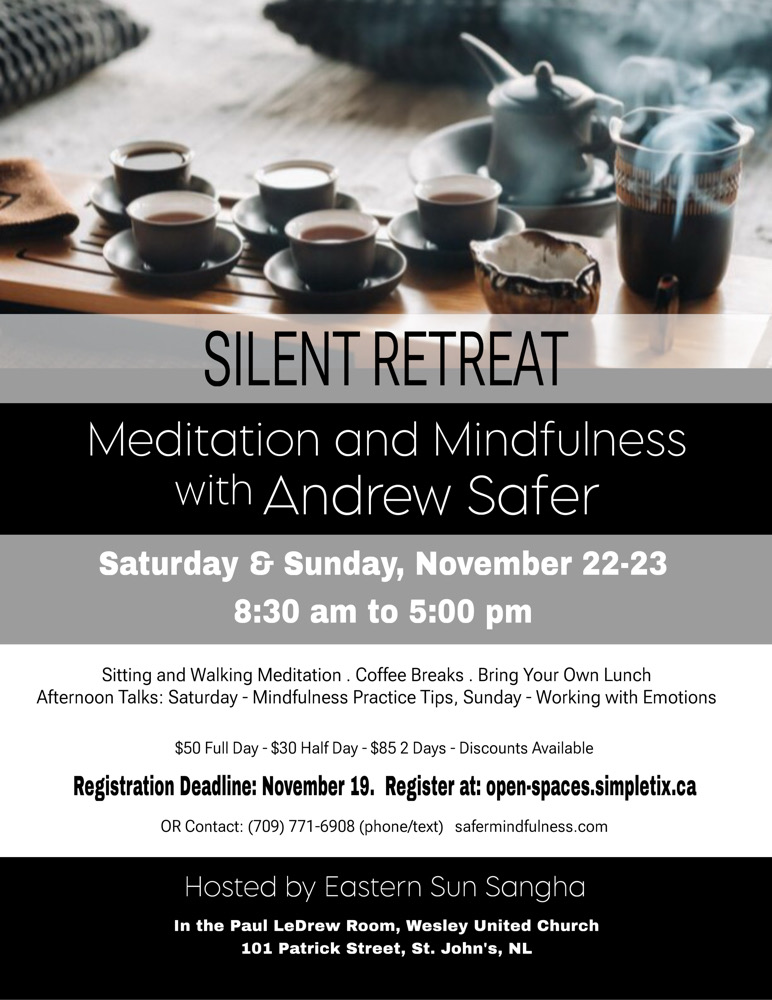 Safer Mindfulness (www.safermindfulness.com) of St. John’s develops and presents applied mindfulness training programs for mental health and addictions, and the workplace.
